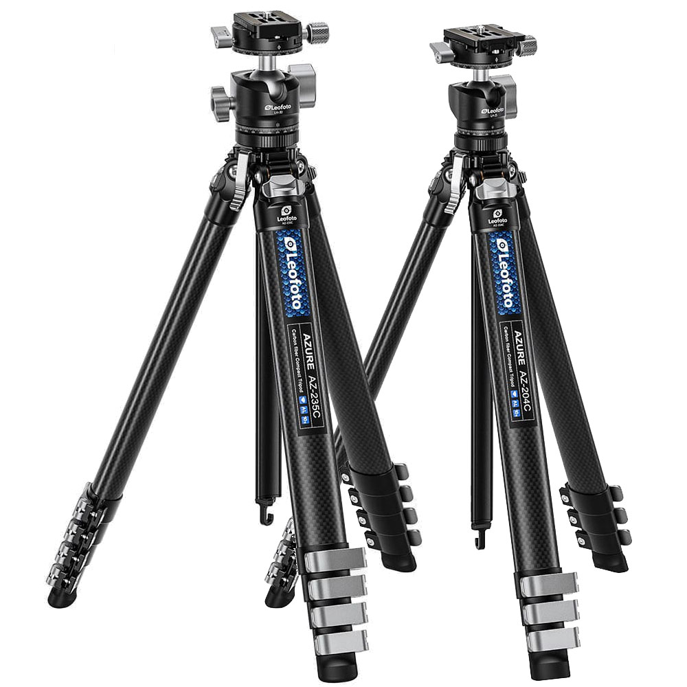 Leofoto hat zwei neue kompakte Dreibeinstative mit Beinen aus Kohlefaser (Carbon) im Angebot. Das Spezielle des «Azure AZ-204C» und des «Azure AZ-235C» ist die Form der Mittelsäule, die den Querschnitt eines «Y» bzw. eines gleichseitigen Dreiecks mit konkaven Seiten hat. Dies ermöglicht zusammen mit ovalen Beinrohren einen geringeren Durchmesser des zusammengelegtes Stativs für Transport und Aufbewahrung.
