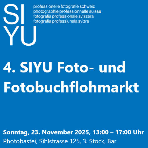 Bereits zum vierten Mal findet am nächsten Sonntag, 23. November 2025 in der Photobastei in Zürich der Fotobuchflohmarkt des Fotografenverbandes SIYU statt. Auf voraussichtlich 20 Tischen werden nicht nur Fotobücher, sondern auch Kameras und Zubehör, Labormaterial und Prints angeboten.