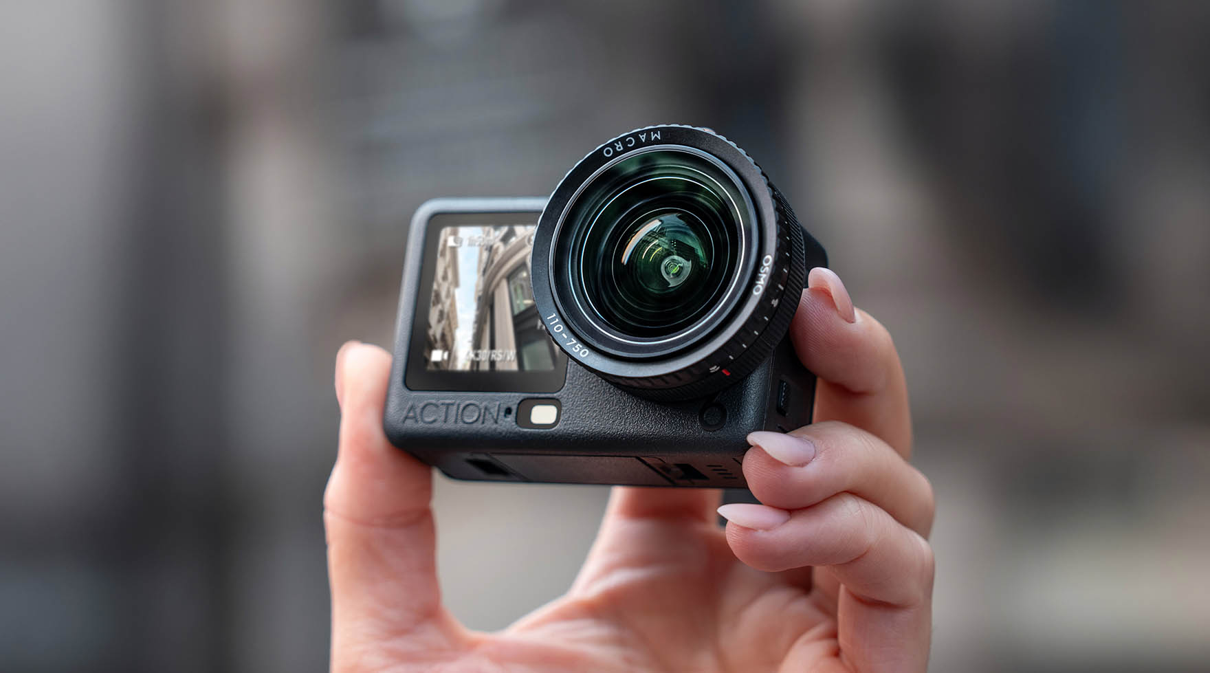 Mit dem Makroobjektiv-Zubehör (separat erhältlich) können Kreative eine kreative geringere Schärfentiefe mit diesem Kameratyp erzielen und Nahaufnahmen von Lebensmitteln, Haustieren und Blumen atemberaubend schön gestalten. Mit dem Makroobjektiv reduziert sich die minimale Fokussierentfernung von 35 cm auf nur 11 cm, was gestochen scharfe Nahaufnahmen für Vlog-Selfies ermöglicht. Bei Weitwinkelaufnahmen wechselt die Kamera automatisch in den FOV-Boost-Modus, wenn das optionale Osmo Action 6 FOV-Boost-Objektiv angebracht ist, und erweitert das native Sichtfeld von 155° auf 182°1, was ideal für wirklich immersive POV-Actionaufnahmen von Rand zu Rand ist.