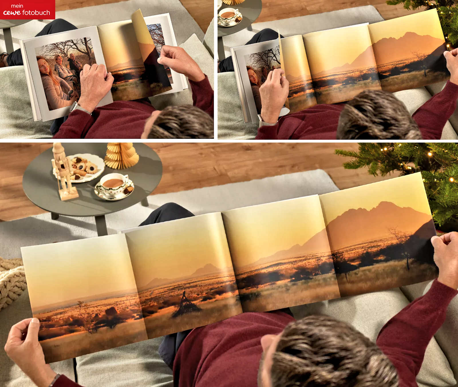 Publikumsliebling und mehrfach ausgezeichnet: Das CEWE Fotobuch H, hier mit der Panoramaseite von über einem Meter Länge, die neue kreative Möglichkeiten für die Präsentation von Fotos eröffnet und Erinnerungen in beeindruckender Grösse festhält.