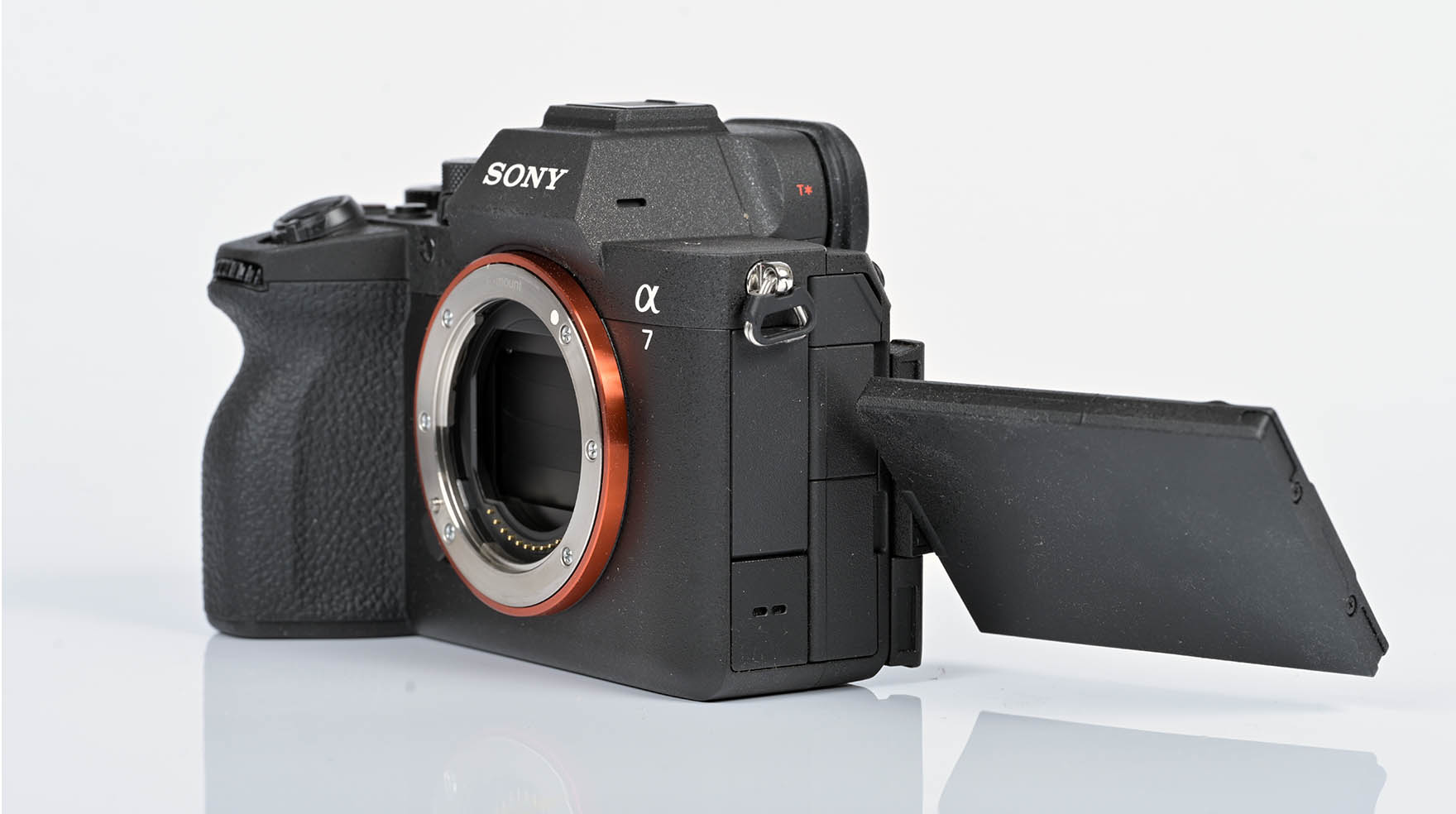 Wie schon ihre Vorgängerin besitzt die Alpha 7 V rückseitig einen seitlich ausklappbaren und drehbaren Touch-LCD. Er kann in Selfie-Stellung gedreht werden oder zum Schutz der Displayoberfläche mit der Bildschirmseite nach innen eingeklappt werden.