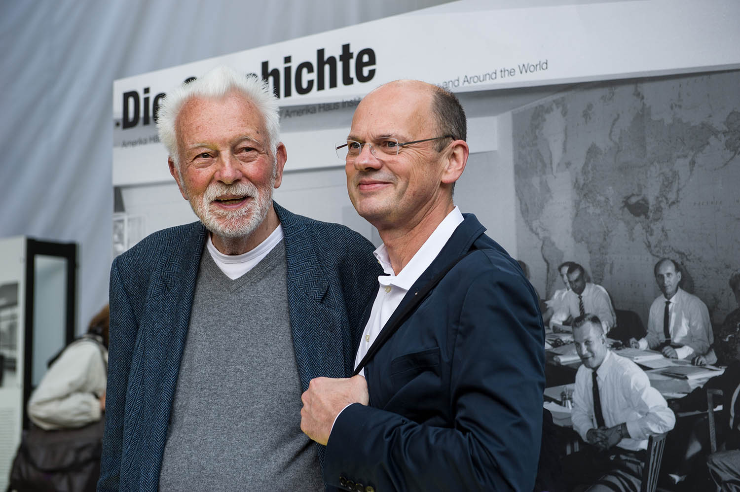 Stephan Erfurt (rechts), Mitgründer des C/O Berlin, und der berühmte deutsche Fotograf Robert Lebeck bei einer Ausstellungseröffnung im Juli 2012